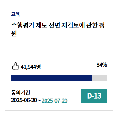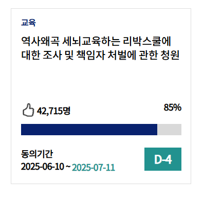 - 예: '학교폭력 강화 처벌 청원' > '가해 학생 신상공개 및 학교 이동 제한 제도 마련 요청'