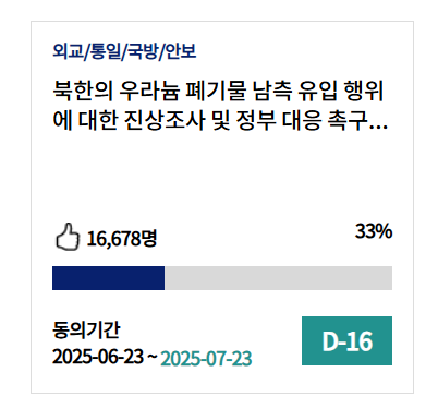 - 이미 동일한 주제의 청원이 존재할 경우 중복 등록으로 간주되어 거절