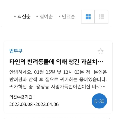 - 청원 목록에서 관심 있는 주제 클릭