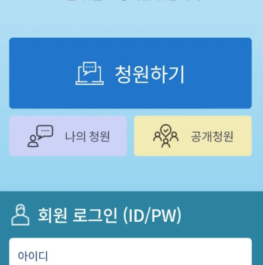 - 메인화면에서 "청원 목록" 또는 "청원하기" 선택