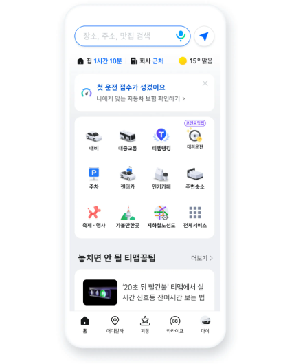 - 터치 없이 호출: 일부 기기에서 '하이 티맵' 음성 호출 지원 (설정 필요)