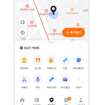등은 동네생활 탭에서만 확인 가능합니다.