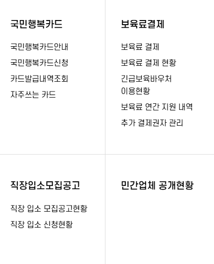 - 보육료, 양육수당, 유아학비 신청 및 관리
