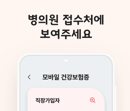 - 앞서 설명한 모바일 자격확인서를 병원 직원에게 보여주면, 본인 확인과 보험 여부를 동시에 증명할 수 있음